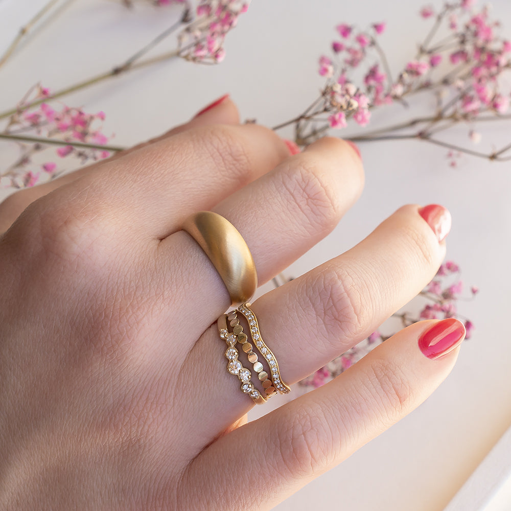 Soft and luxurious, the Luna Bombe Ring is a bold piece made for everyday wear.