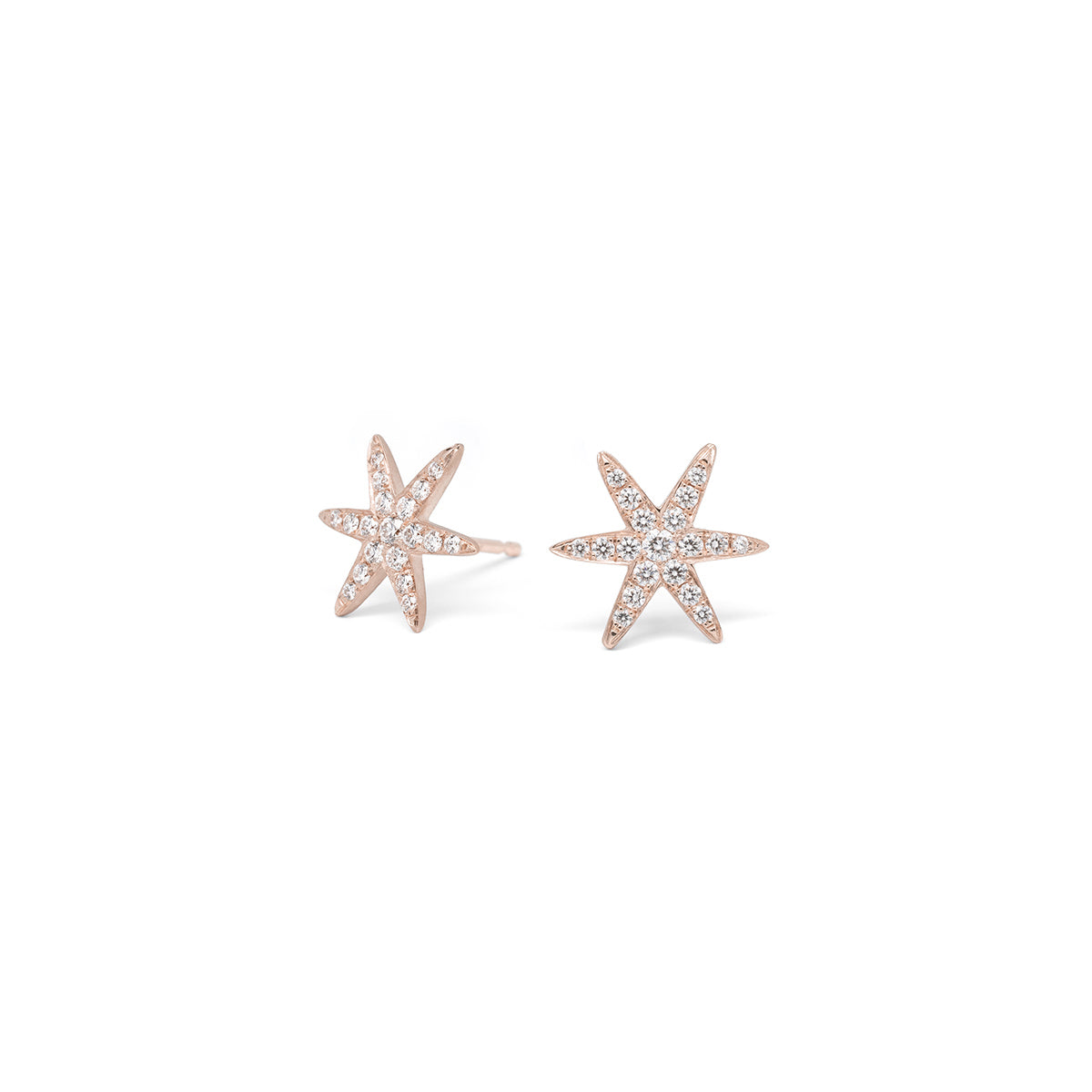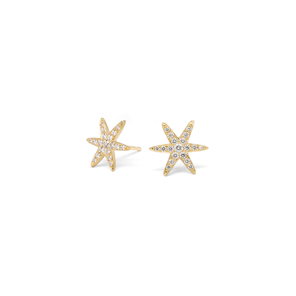 Diamond gold 'Celestial' star stud earrings with graduating diamonds paved on one side.