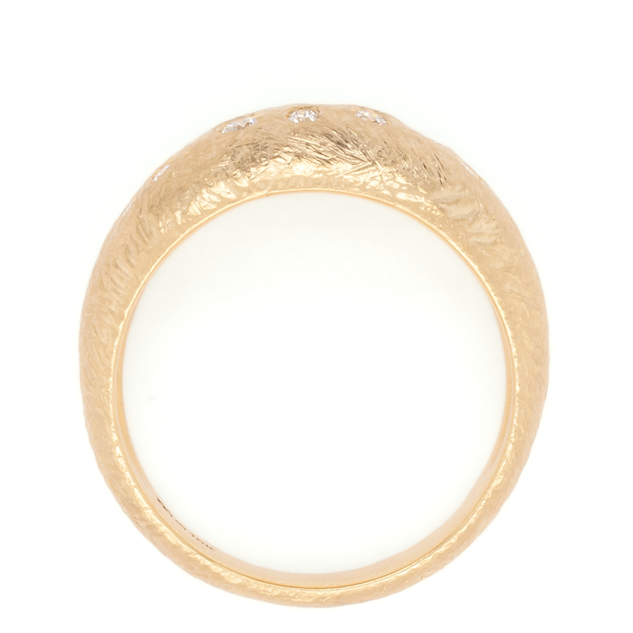 The 'Boulder' Diamond Bombe Ring is on a mission to add some sparkle to your life! This organic ring is sure to make an impact with its unique boulder texture and scattered diamonds. Get ready to be showered with compliments - no effort required!