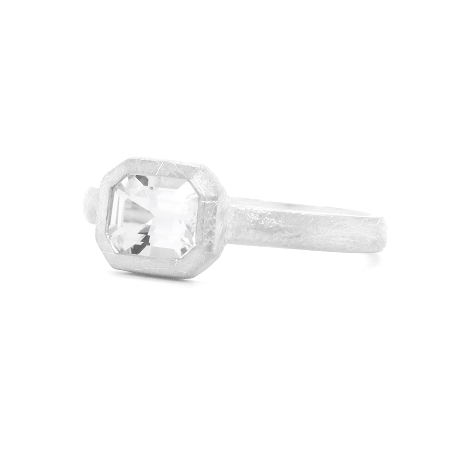 This timeless East-West gemstone ring boasts a modern, bold, thick bezel design and boulder texture.