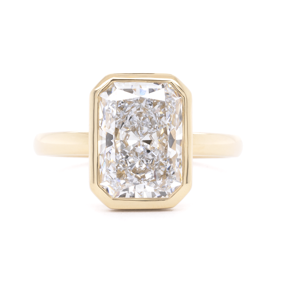 The Setting: A thin ~1.1mm bezel surrounds the diamond.