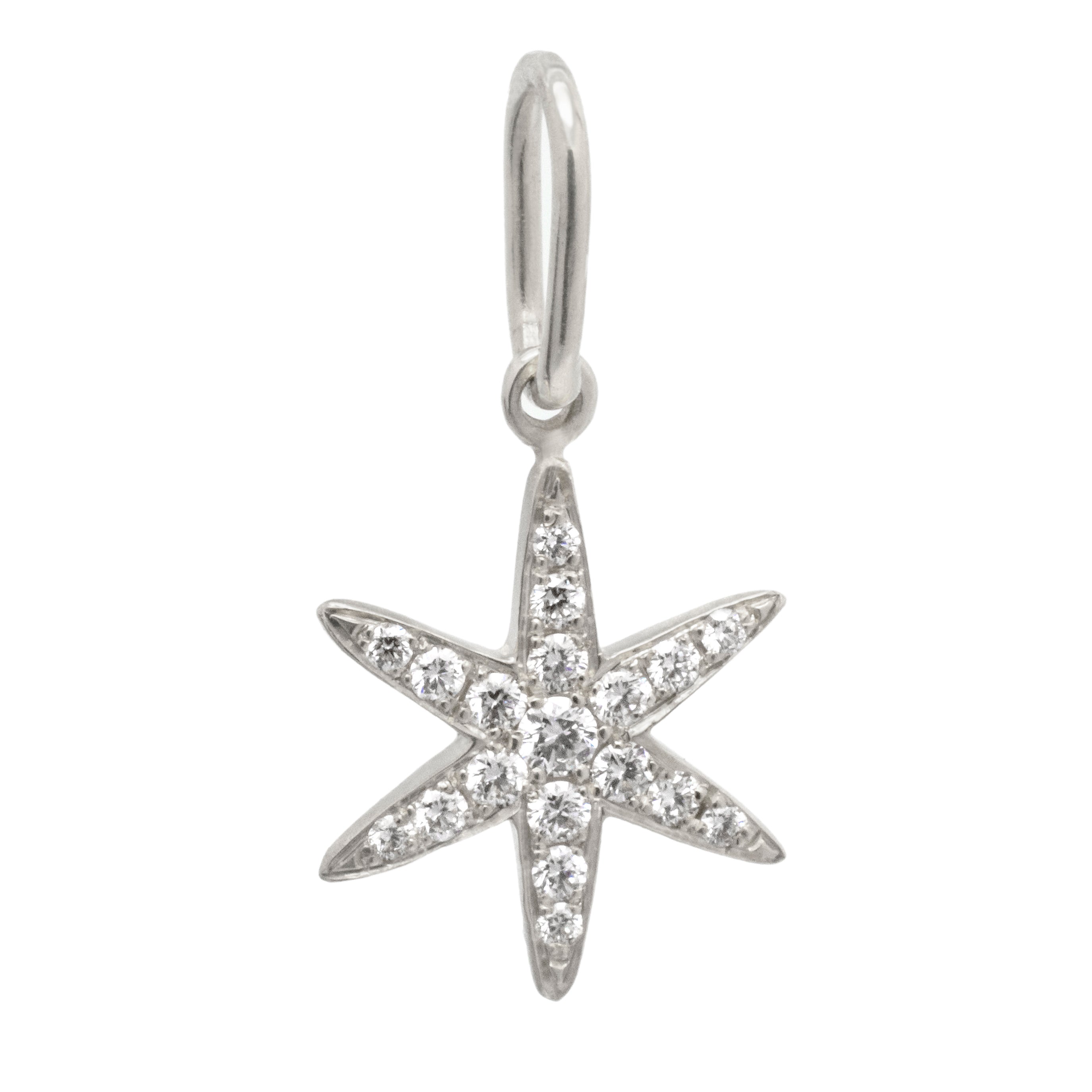 Gold star charm with graduating diamond sizes on one side ~0.093 total carat weight.