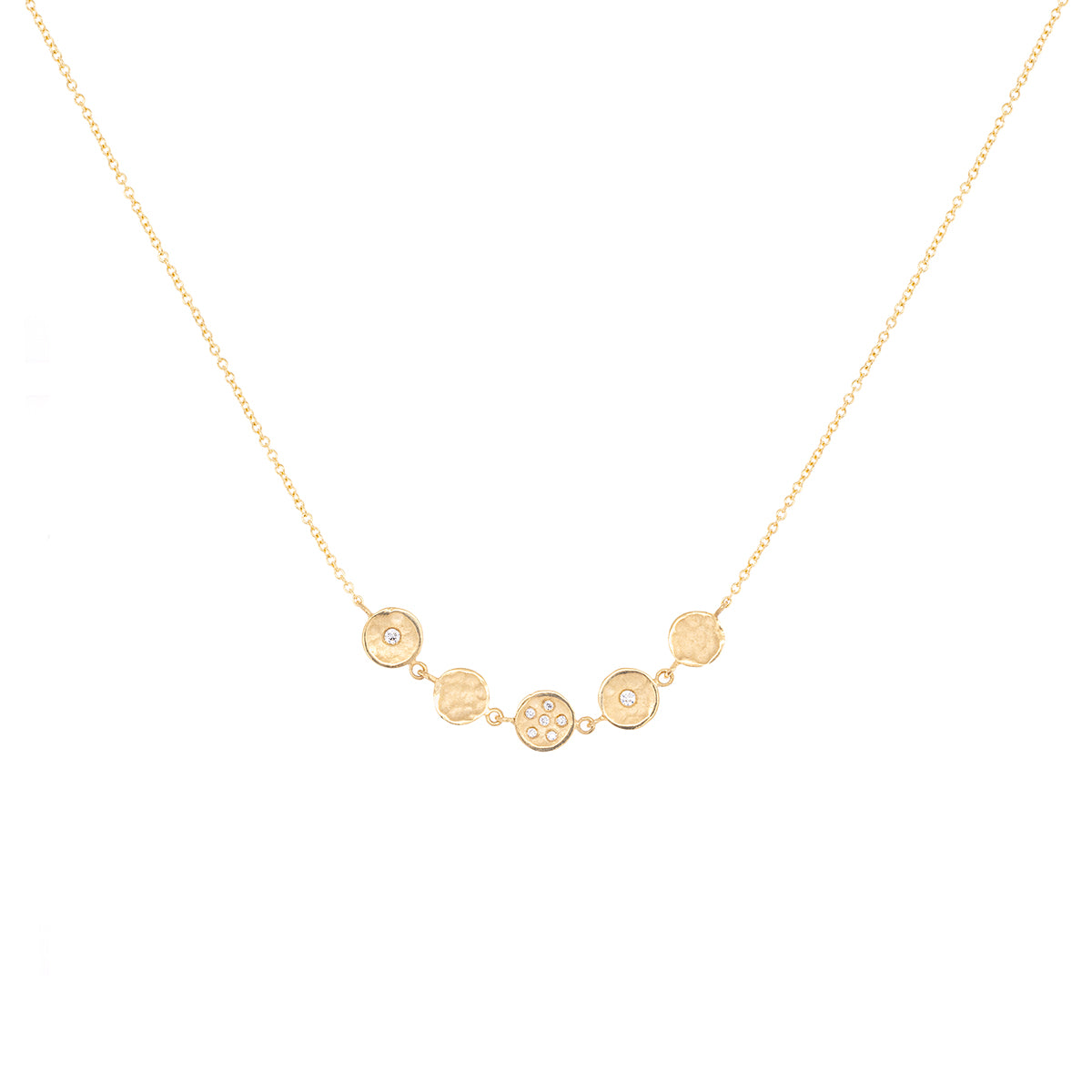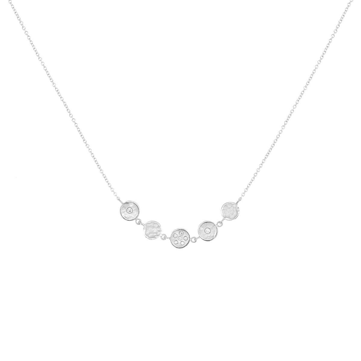 Five Centered 6mm Mini Diamond Disc Necklace