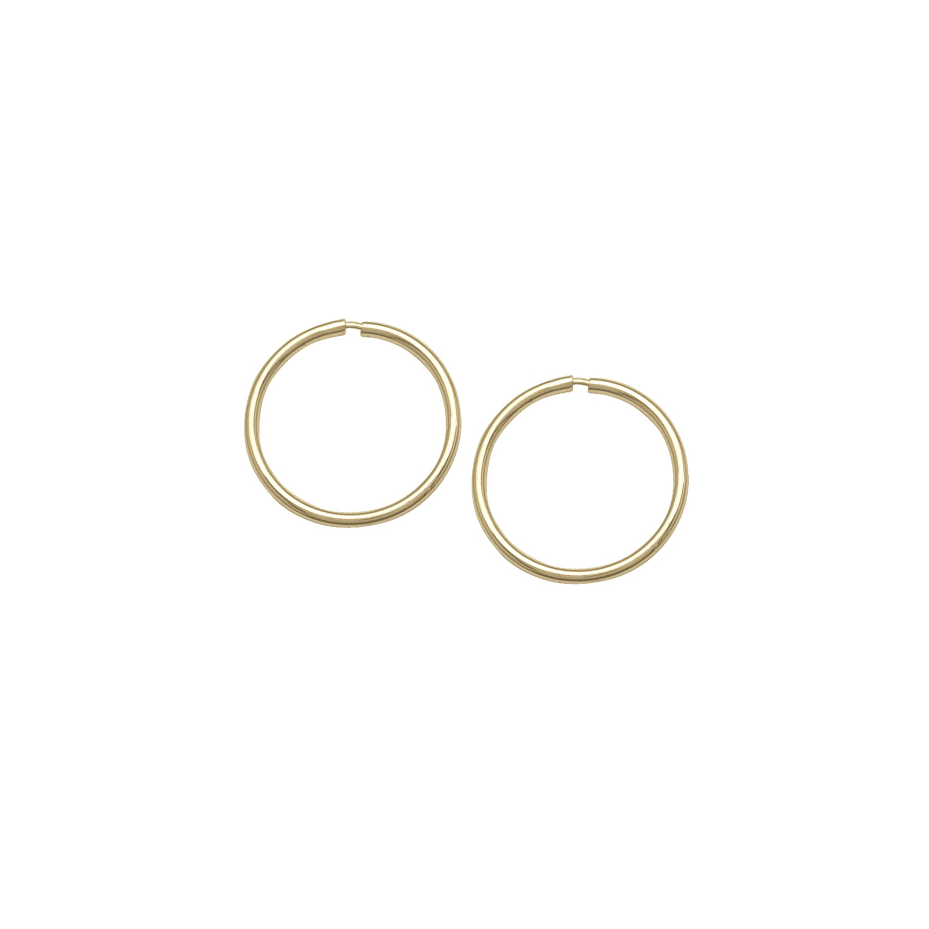 Gold hollow tube hoop sleeper earrings, or endless huggies.