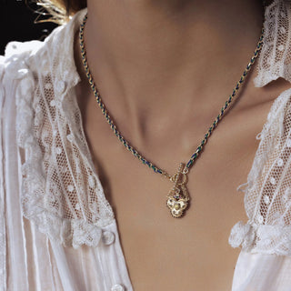 N° 182 Ruthenium Lurex Silk & Chain Braided Necklace Bracelet
