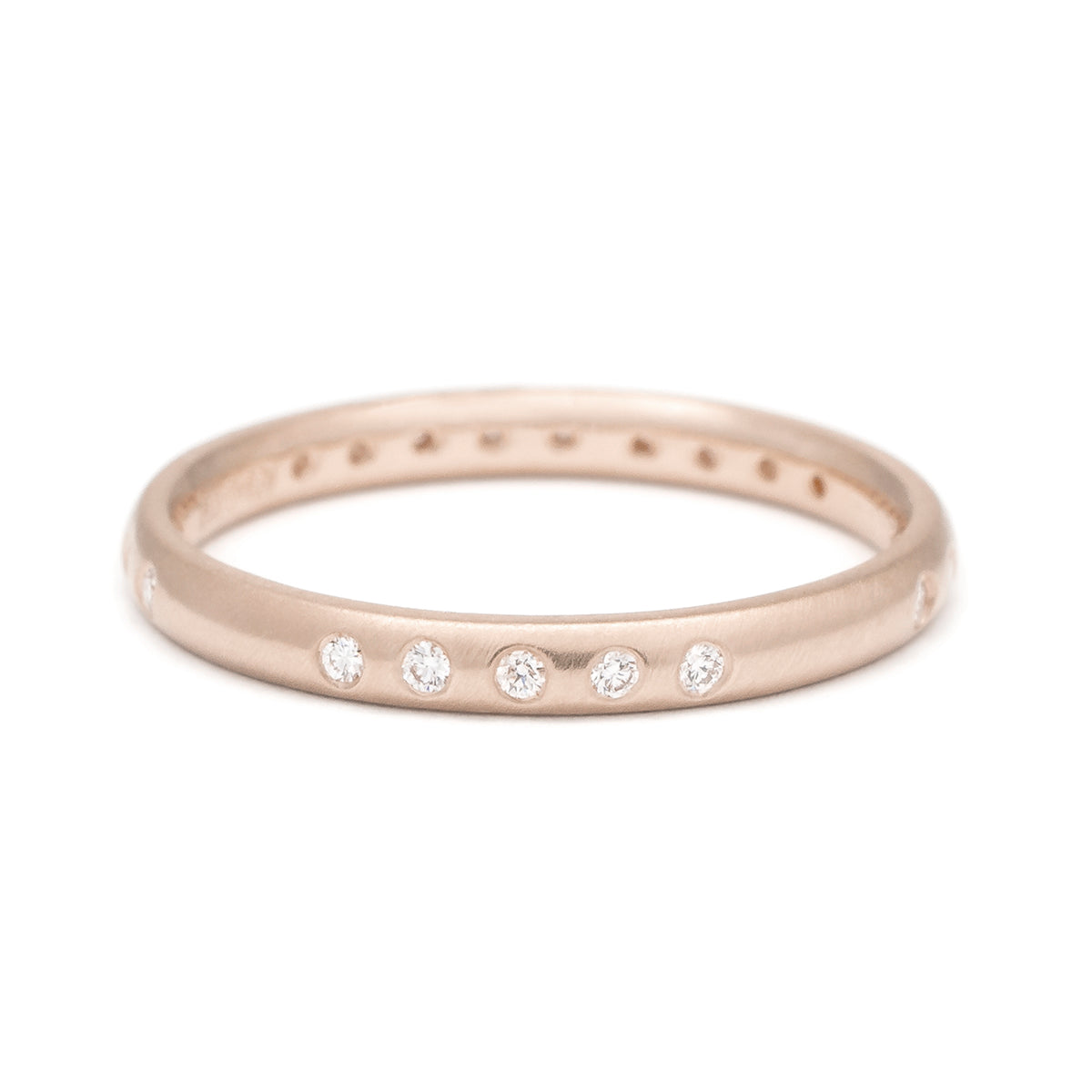 Beautiful smooth gold band with a whimsical placement of tiny diamonds.