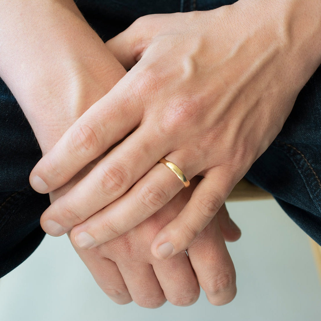 A subtle combination of our organic wonky shape and micro hammer texture come together in a wider band.