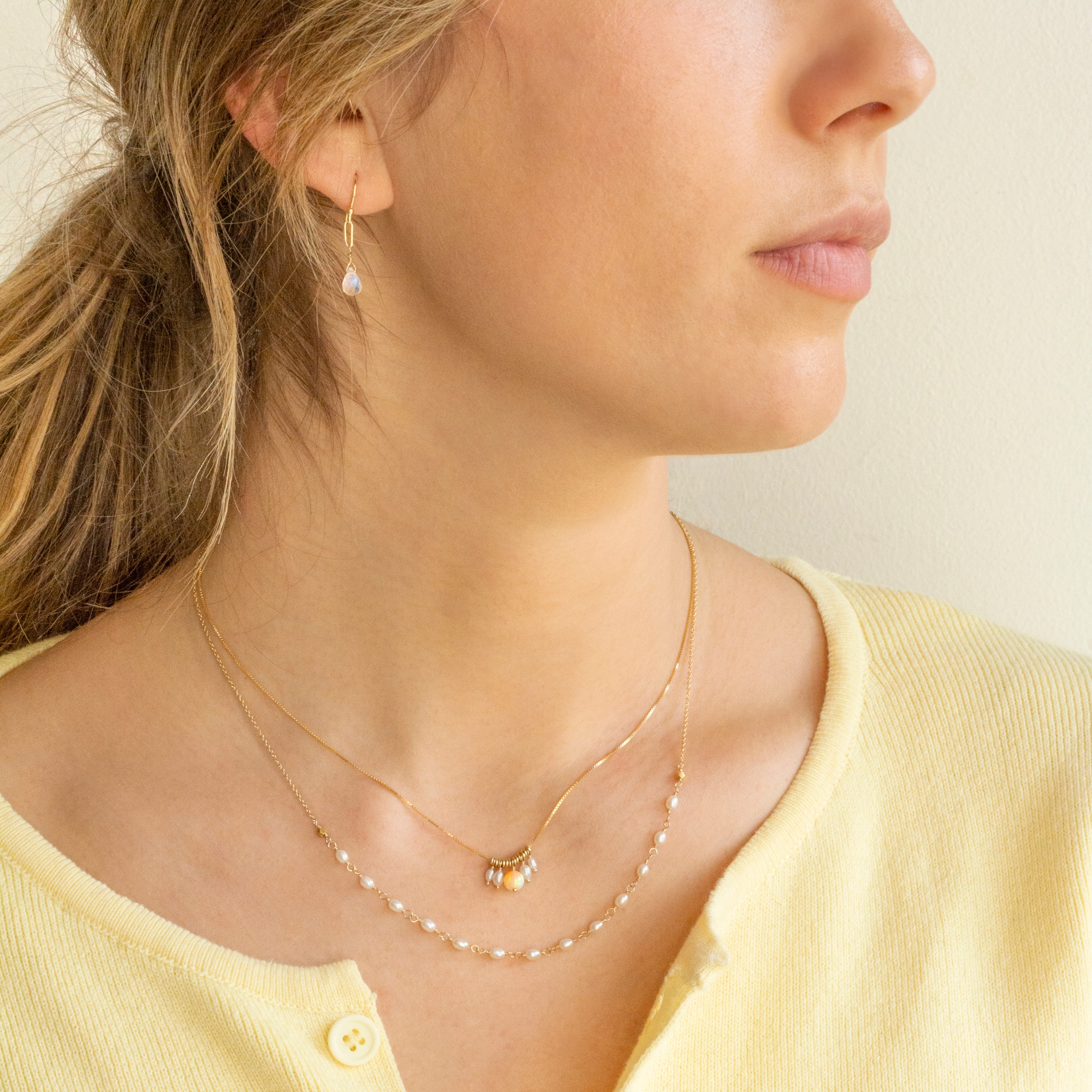 Length: 16-18" extendable chain | Pearls: ~2.5 x 3mm | Pearl Strand: 5" of tied pearls.