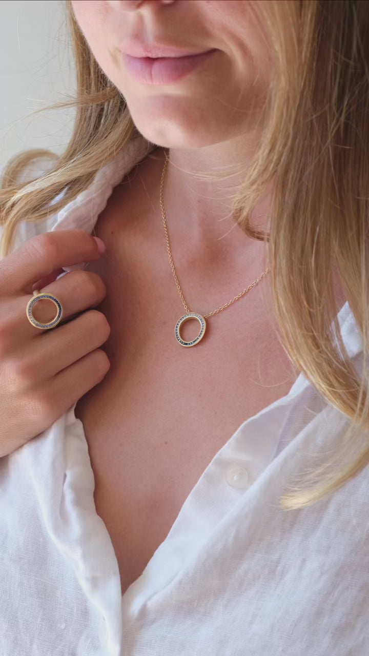 Like an enchanting sea cove... Our gorgeous organic open circle ombre blue sapphire ring transports you to a calm and beautiful moment on the water.
