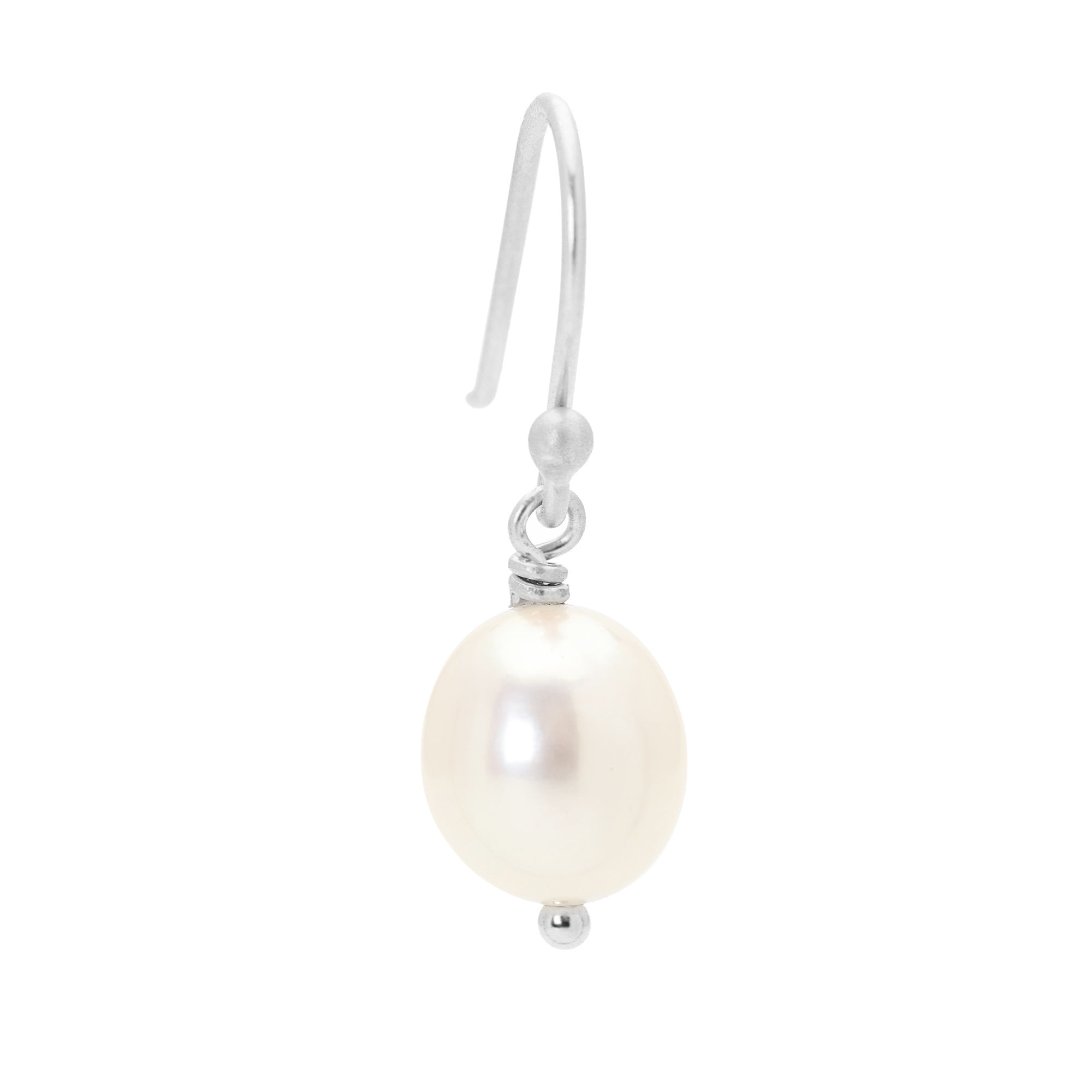 Gold hook earrings with smooth oval fresh water white pearl (7.5mm).