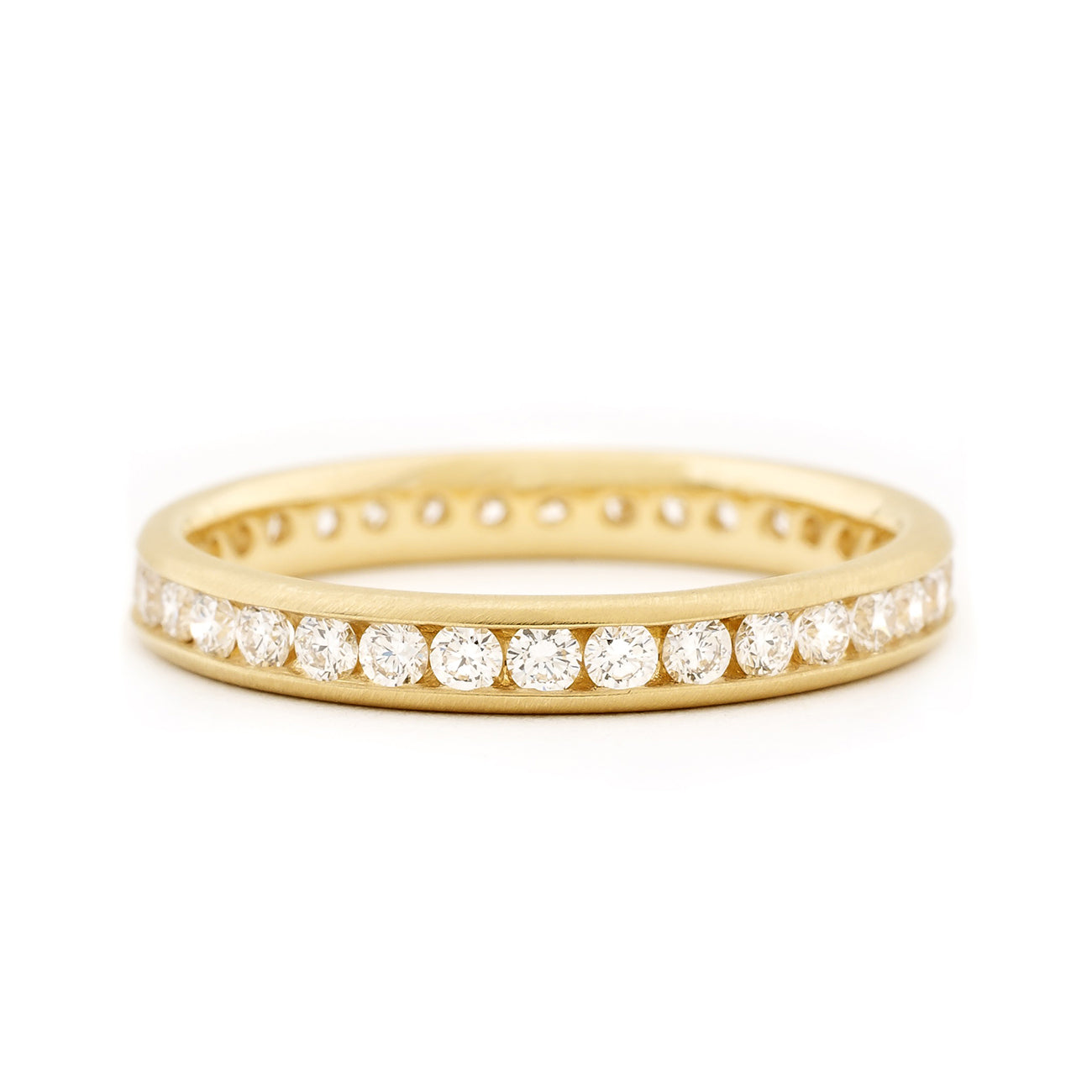 The clean and classic lines of a channel set band are heightened with Anne`s exceptional quality of materials.