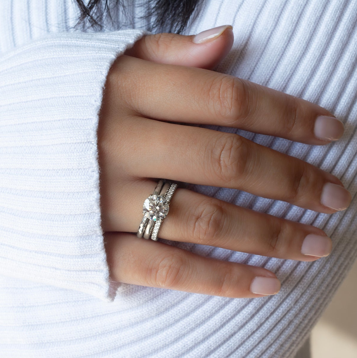 So simple, yet eye catching. Get that extra sparkle with our hammered round band. Comfortable, with a satisfying substantial weight to it.