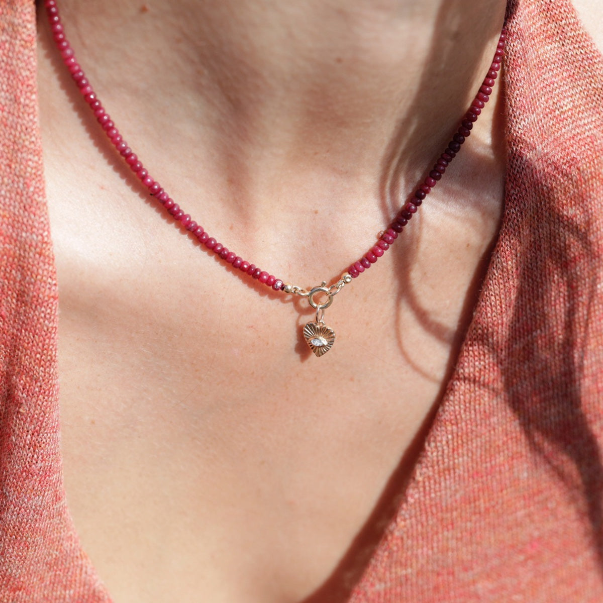 Crafted with a sunbeam texture reminiscent of the '60s, this Heart pendant is inspired by the Rumi quote: "Let yourself be silently drawn by the strange pull of what you really love."